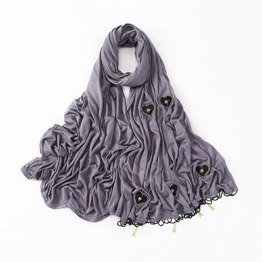 Wholesale Premium Viscose Jersey Hijab with Beaded Hearts Tassel Cloud Dancer Scarf