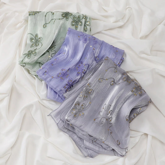 Wholesale Luxury Chiffon Hijab with Rhinestone Edge Diamond Trim Scarf