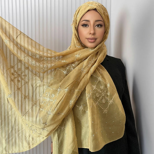Wholesale Luxury Beaded Chiffon Hijab Gold Embroidery and Pearls