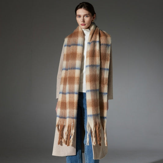 Faux Mohair Jacquard Double-Line Plaid Scarf - Boucle Yarn Fluffy Warm Shawl Dealers