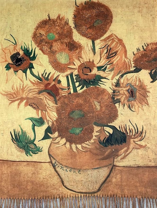 Faux Cashmere Van Gogh Sunflower Art Scarf - Soft and Delicate Shawl Bulk