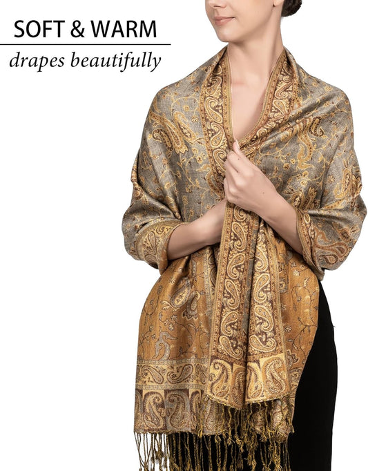 Wholesale Metallic Cashmere Elegant Paisley Jacquard Scarf - Cozy Chic Warm Shawl
