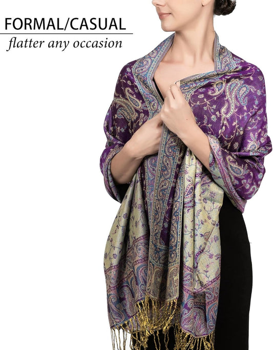 Bulk Paisley Cashmere Women's Tassel Shawl - Double-Sided Vintage Jacquard Travel Blanket