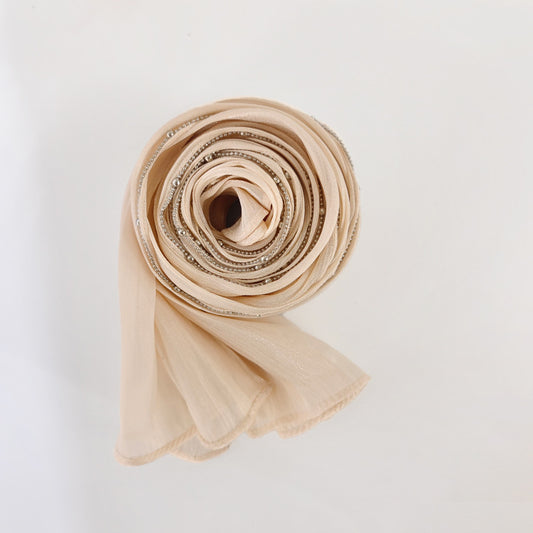 Women's Solid Color Headscarf Silver Metal Bead Edge Long Scarf ODM