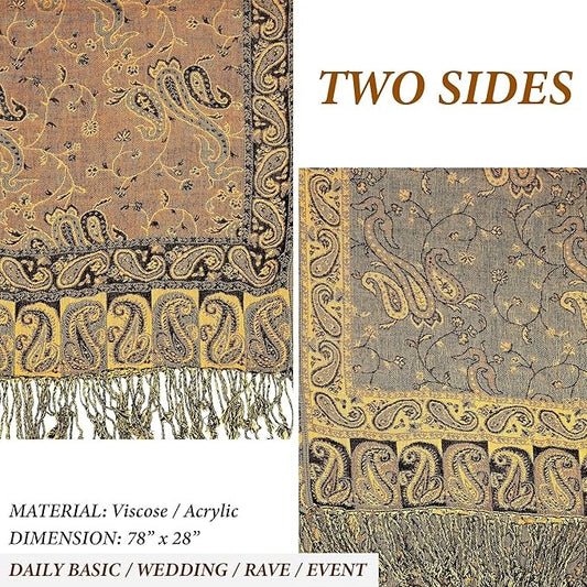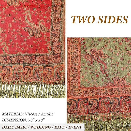 Company Women's Double-Sided Cashew Silky Shawl - Vintage Jacquard Soft Office Blanket