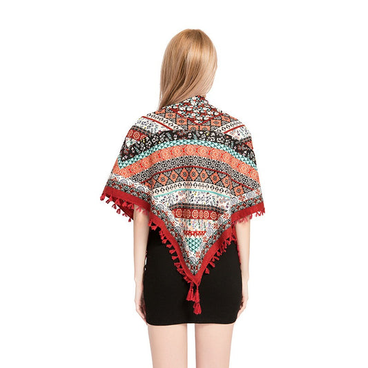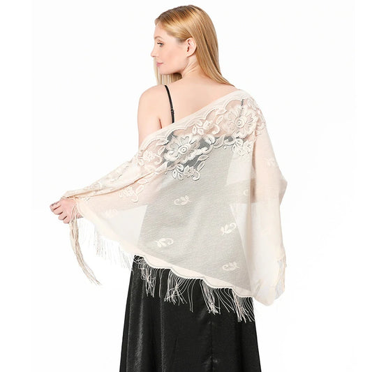 Wholesale Women's Lace Flowers Triangular Scarf Shawl Tassel