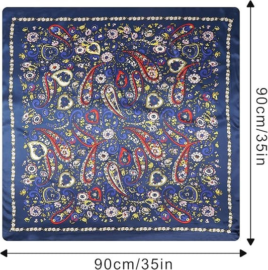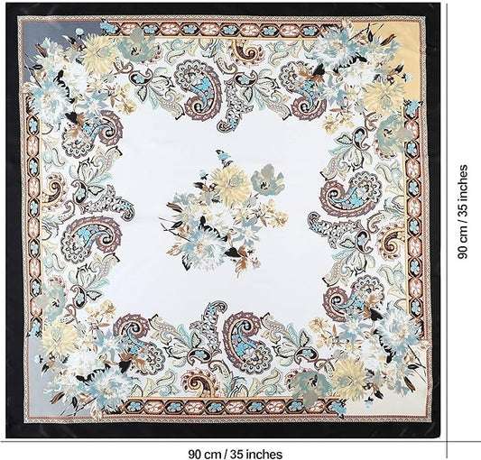 Custom 35 inches Paisley Satin Bandana - Ditsy Floral Large Square Scarf