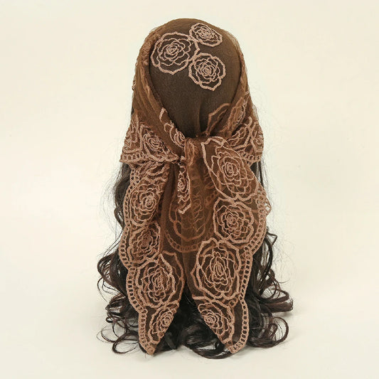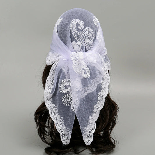 Wholesale Lace Trim Cashew Flowers Embroidered Square Scarf Headband