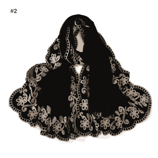 Custom Muslim Classic Black Embroidered Scarf Long Hijab Stole Shawl