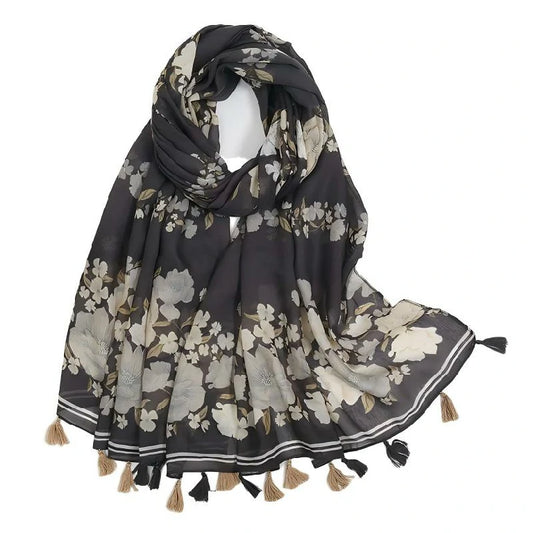 As the name suggests, a floral scarf is a scarf that features various flowers and plants as its primary pattern element. It can be made from materials such as silk, cashmere, or cotton-linen blends, but its core appeal lies in the "blooming flowers" depicted in its pattern.