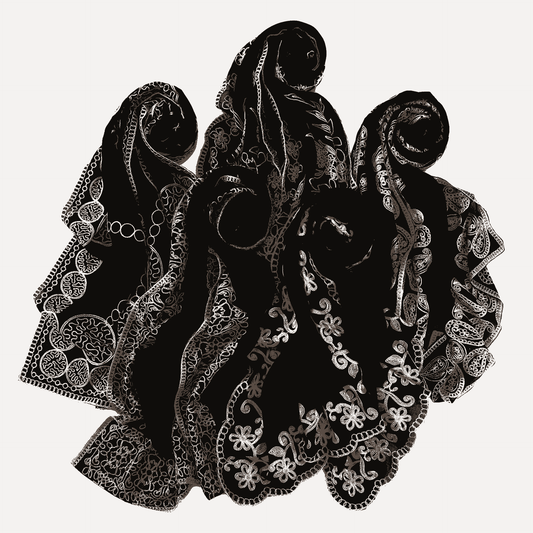 Custom Muslim Classic Black Embroidered Scarf Long Hijab Stole Shawl