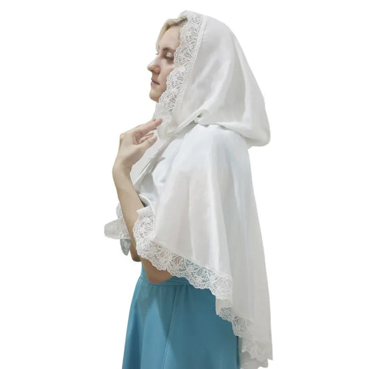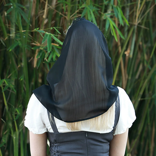 Maker Women's Lace Short Cape with Hood - Victorian Style Solid Color Hijab Head Scarf