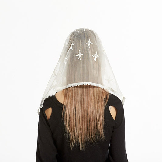 Wholesale Pastoral Flower Embroidered Lace Head Scarf - Catholic Church Mass Scarf