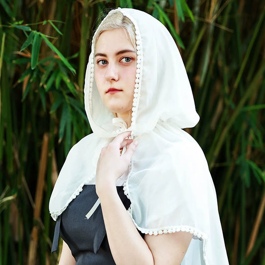 Bulk Chiffon Vintage Church Hooded Cape - Victorian Style Lace Trim Wedding Bridal Cape