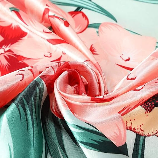 Producer 35 inches Summer Floral Print Square Scarf - Vintage Chinese Style Sleeping Turban
