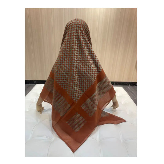 How to wear it: There are many ways to wear the Arabic scarf, the most common is to fold it in half into a triangle and wrap it around the head, and the ends can be tied behind the neck or draped over the shoulders.