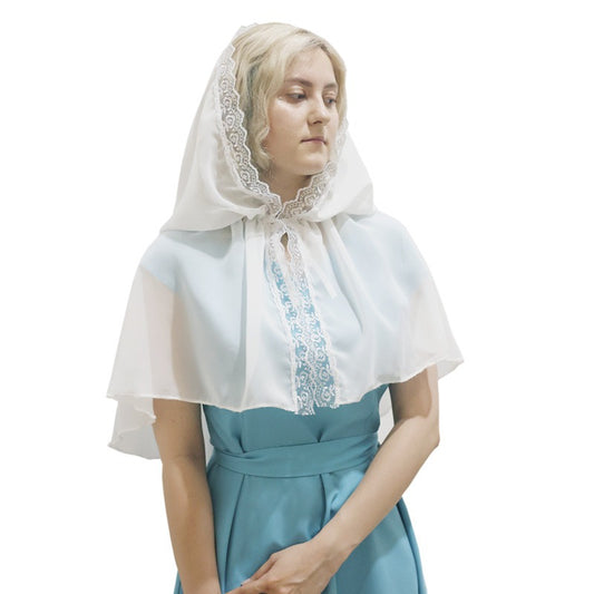 Maker Women's Lace Short Cape with Hood - Victorian Style Solid Color Hijab Head Scarf