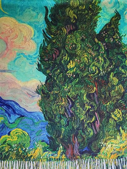Green Tree Art Scarf Windproof Throw Blanket - Cypresses by Van Gogh Custom