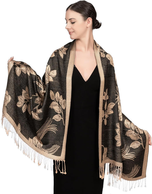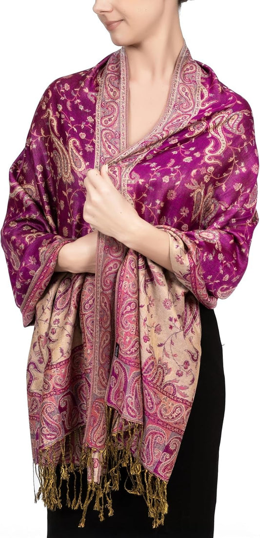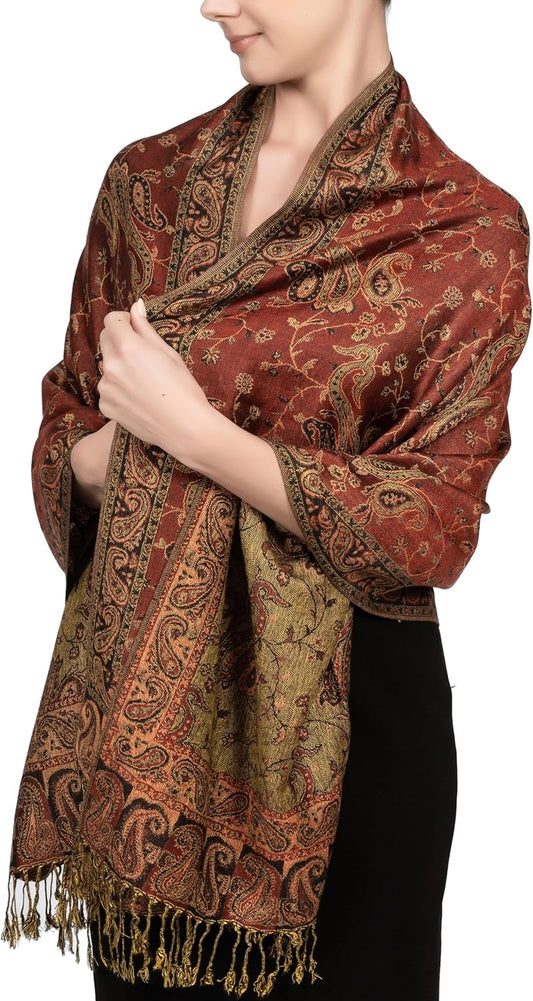 Bulk Two Tone Silky Paisley Cashmere Shawl - Soft Jacquard Cashmere Shawl Scarf for Women