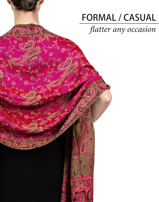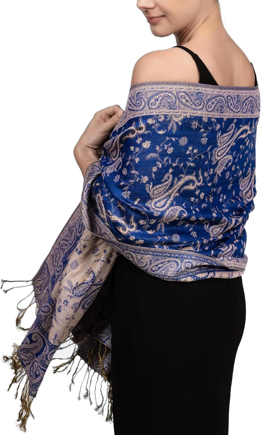 Bulk Two Tone Silky Paisley Cashmere Shawl - Soft Jacquard Cashmere Shawl Scarf for Women
