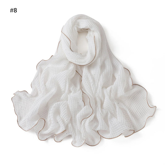 Wholesale Solid Colour Wavy Edge Beaded Pearl Embellished Hijap Scarf