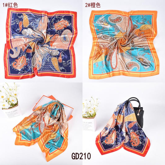 Bulk 35 inches Silky Printed Fashion Square Scarf - Multicolor Floral Elegant Lady Shawl