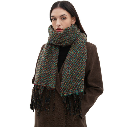 Winter Warm Cozy Patchwork Neckwear - Oversize Medley Short Tassel Scarf Shawl OBM
