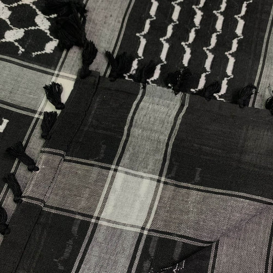 SalePremium Inverted Black And White Keffiyeh With Tassels - Customized Authentic Palestinian Shemagh