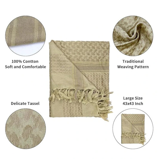 Protection: The main function of Shemagh is to protect the wearer from dust, hot sun and cold weather. It is especially suitable for use in dry, hot desert environments, which can block the sun and prevent wind and sand.