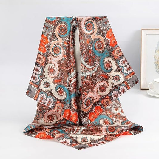 Dealers 35 inches Paisley Satin Square Scarf - Multicolor Cashew Women's Floral Scarf