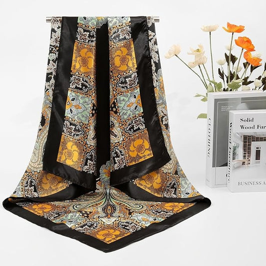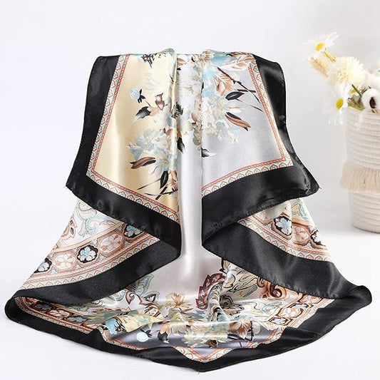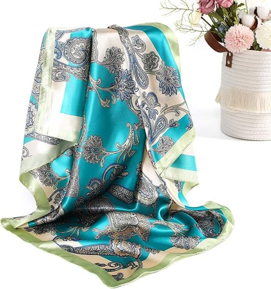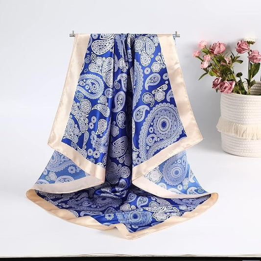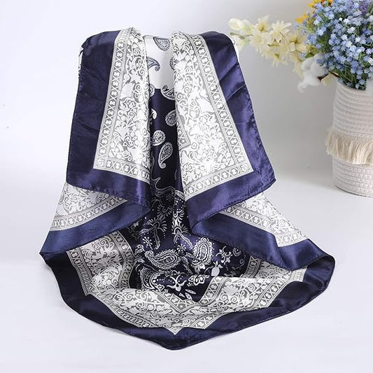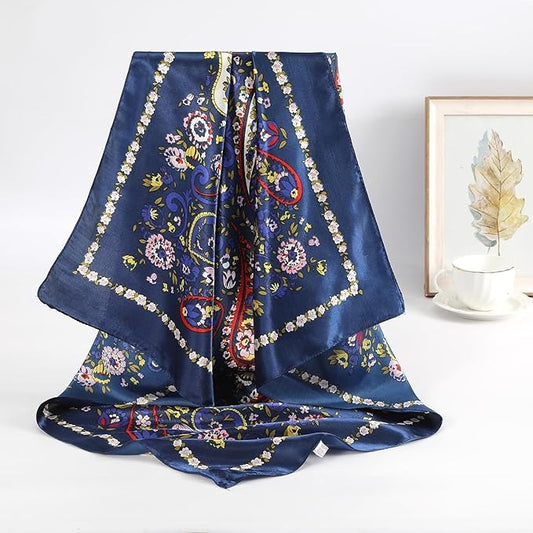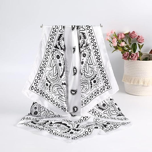 Custom 35 inches Paisley Satin Bandana - Ditsy Floral Large Square Scarf
