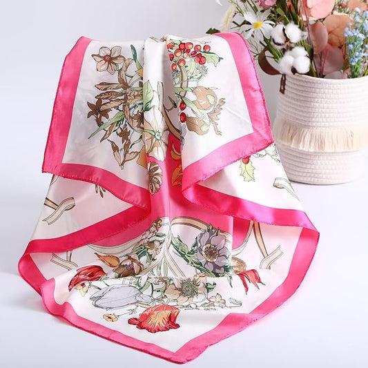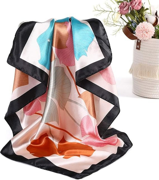 Makers 35 inches Border Floral Pattern Sleeping Bandana - Large Square Print Scarf Shawl