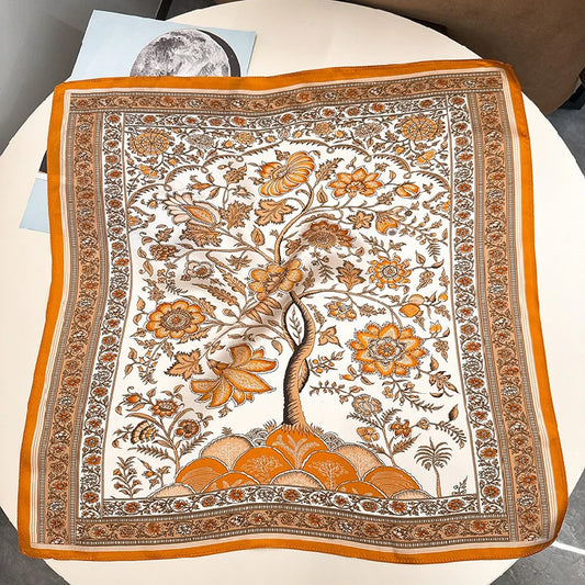 Wholesale Square Silk Scarf Women Floral Bird Print Versatile Neck Head Bag Accessory
