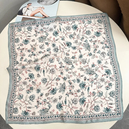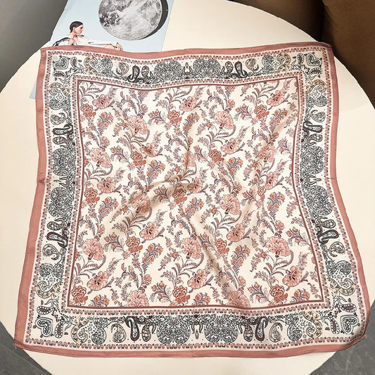 Wholesale Vintage Floral Silk-like Square Scarves Bulk Soft Satin Hair Scarf