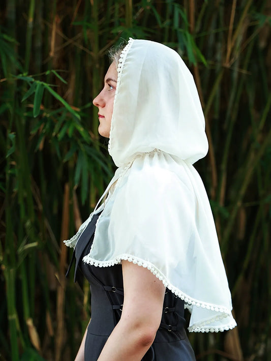 Bulk Chiffon Vintage Church Hooded Cape - Victorian Style Lace Trim Wedding Bridal Cape