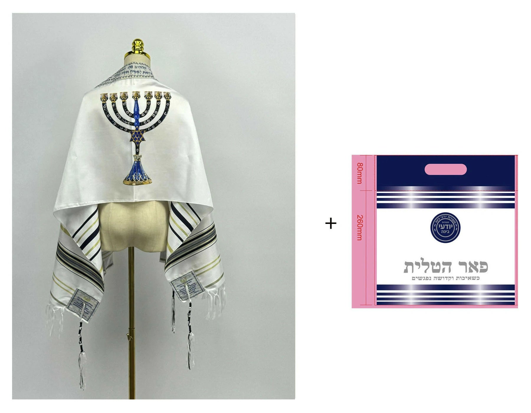 The Tallit comes as a set with a matching Tallit and Tfillin Bag and a matching kippah. This set is a perfect gift Idea for any jewish occasion, Especially Bat or Bar mitzvahs and Jewush weddings.