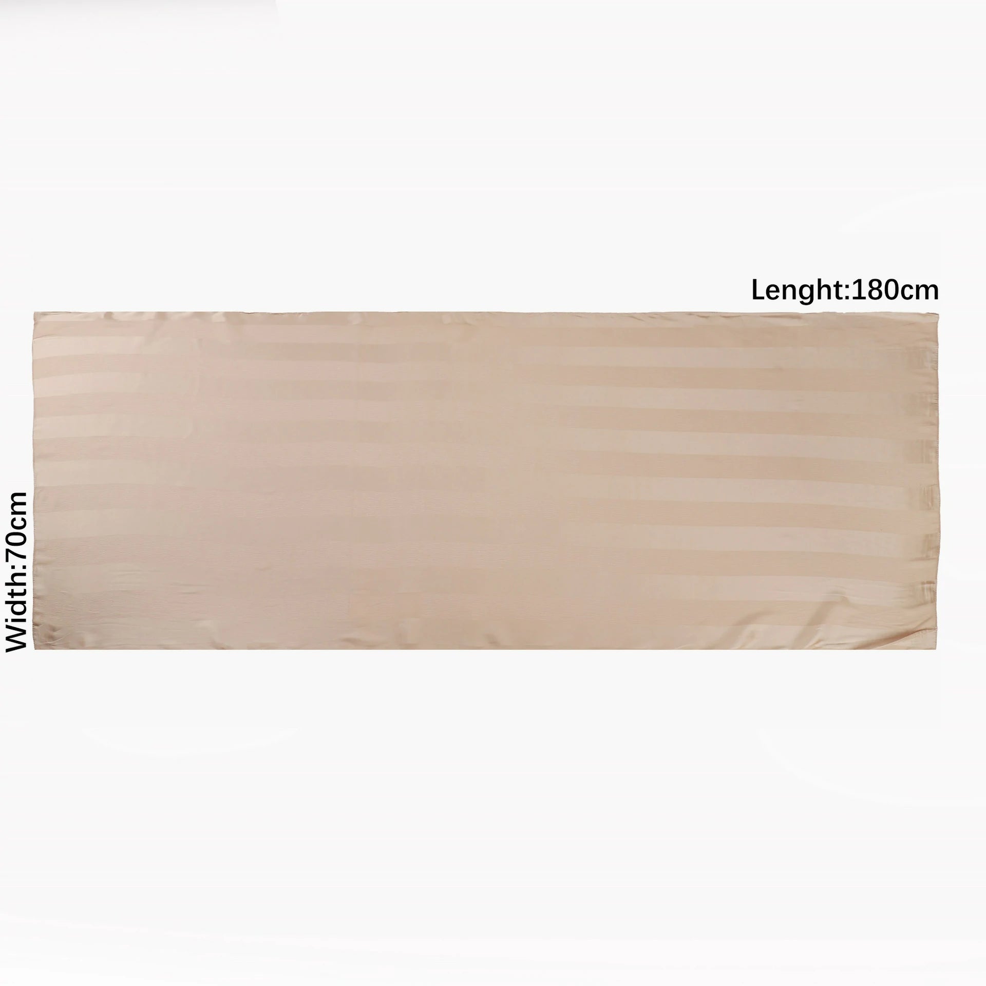 The scarf presents a refined, satin-look finish with subtle tonal stripes that create depth and a gentle sheen under light. Its rectangular (oblong) silhouette produces smooth, elegant drape and layered styling options, suitable for both casual and formal wardrobes. Available in 14 colorways ranging from soft neutrals to richer jewel tones, the palette supports coordinated outfit styling for weddings, office wear and special occasions.