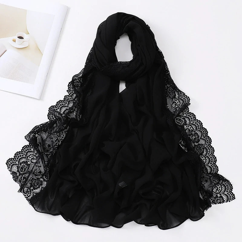Floral Lace Trim hijab Scarf